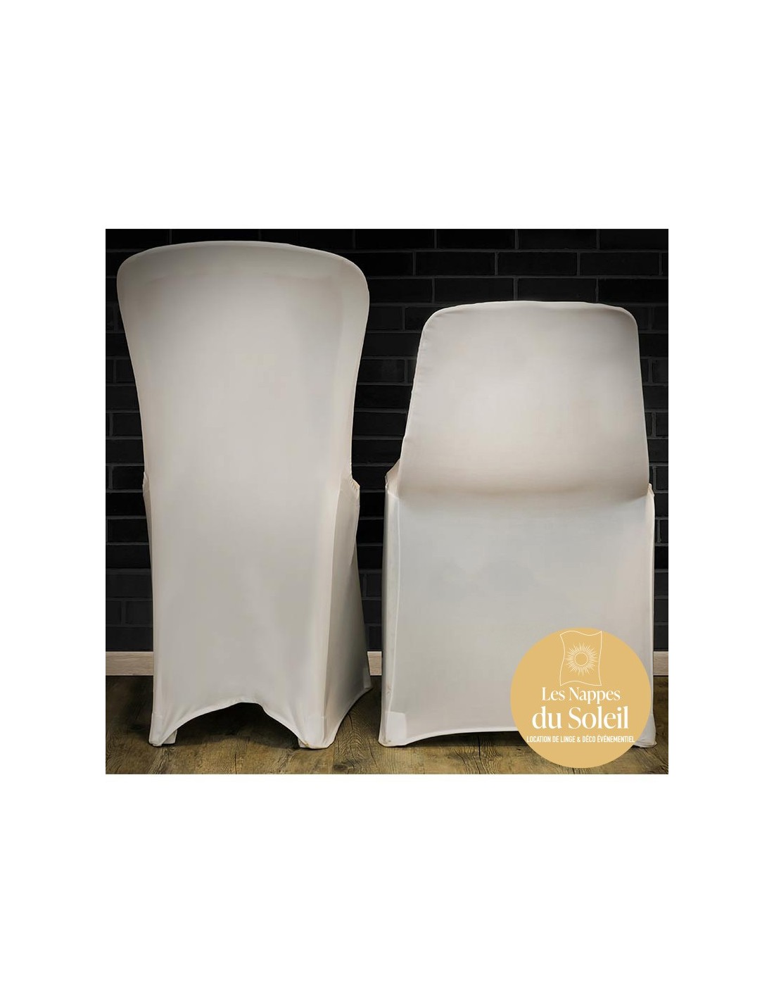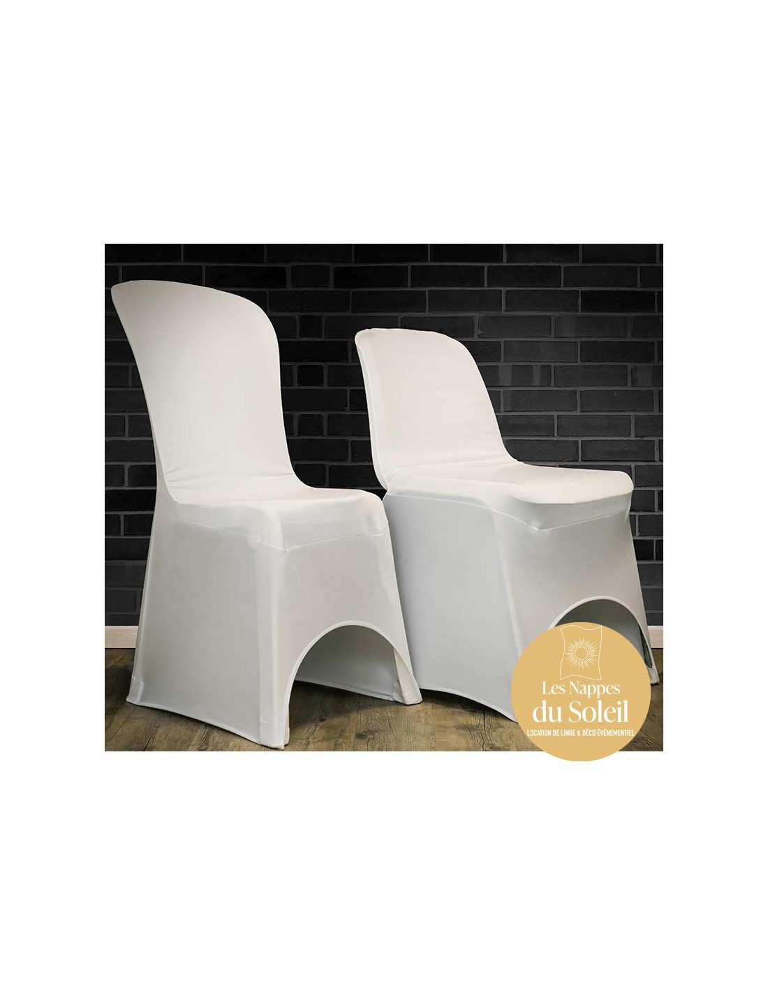 Housse de chaise en lycra blanc extensible, idéale pour mariages, réceptions et événements professionnels.