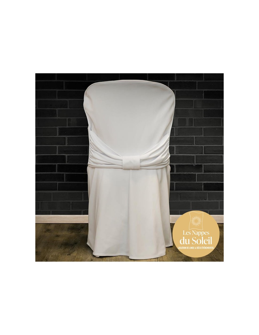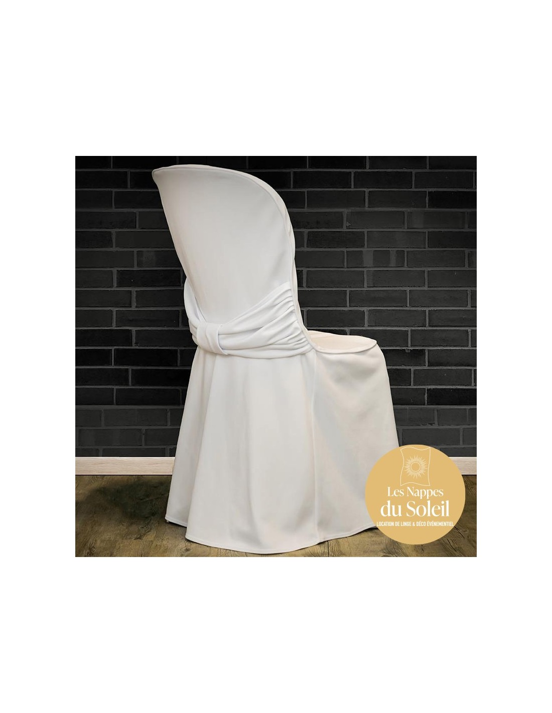 Housse en tissu blanc adaptée aux chaises Miami, idéale pour mariages, réceptions et événements professionnels.